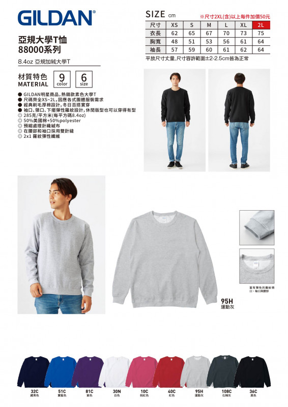 ● GILDAN明星商品,熱銷款素色大學T